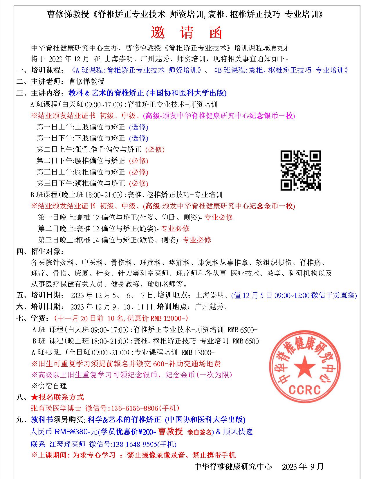 2026曹修悌 - 整脊 培训 课 程 表 |