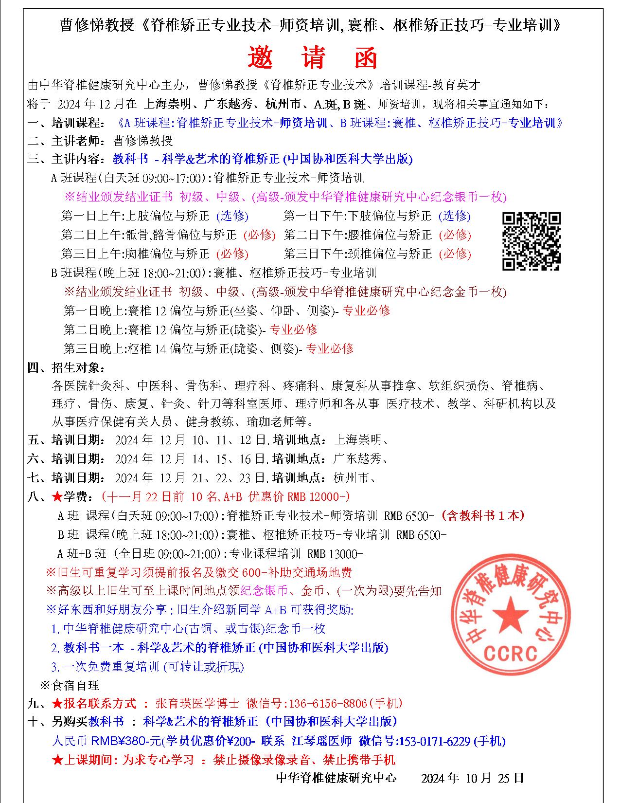 2025曹修悌 - 整脊 培训 课 程 表 |